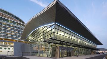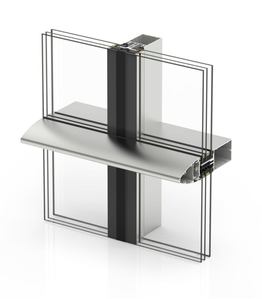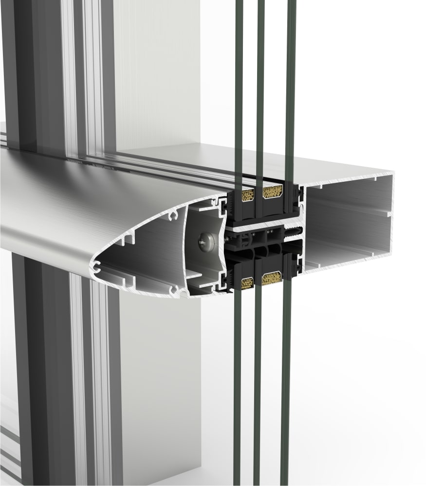 » Múltiples uniones mecánicas de los perfiles que posibilitan fachadas en vertical, con inclinación, poligonales y modulaciones con vidrios de gran tamaño y peso.