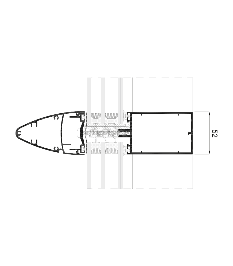 Secciones | Montante 52 mm, Travesaño 52 mm |
