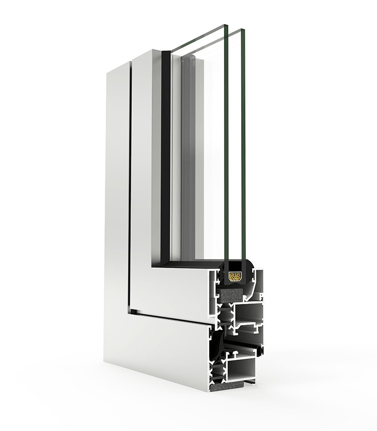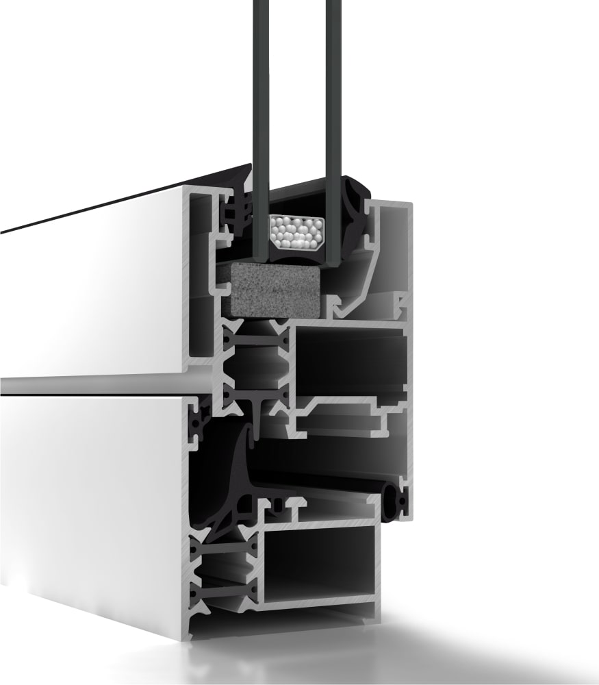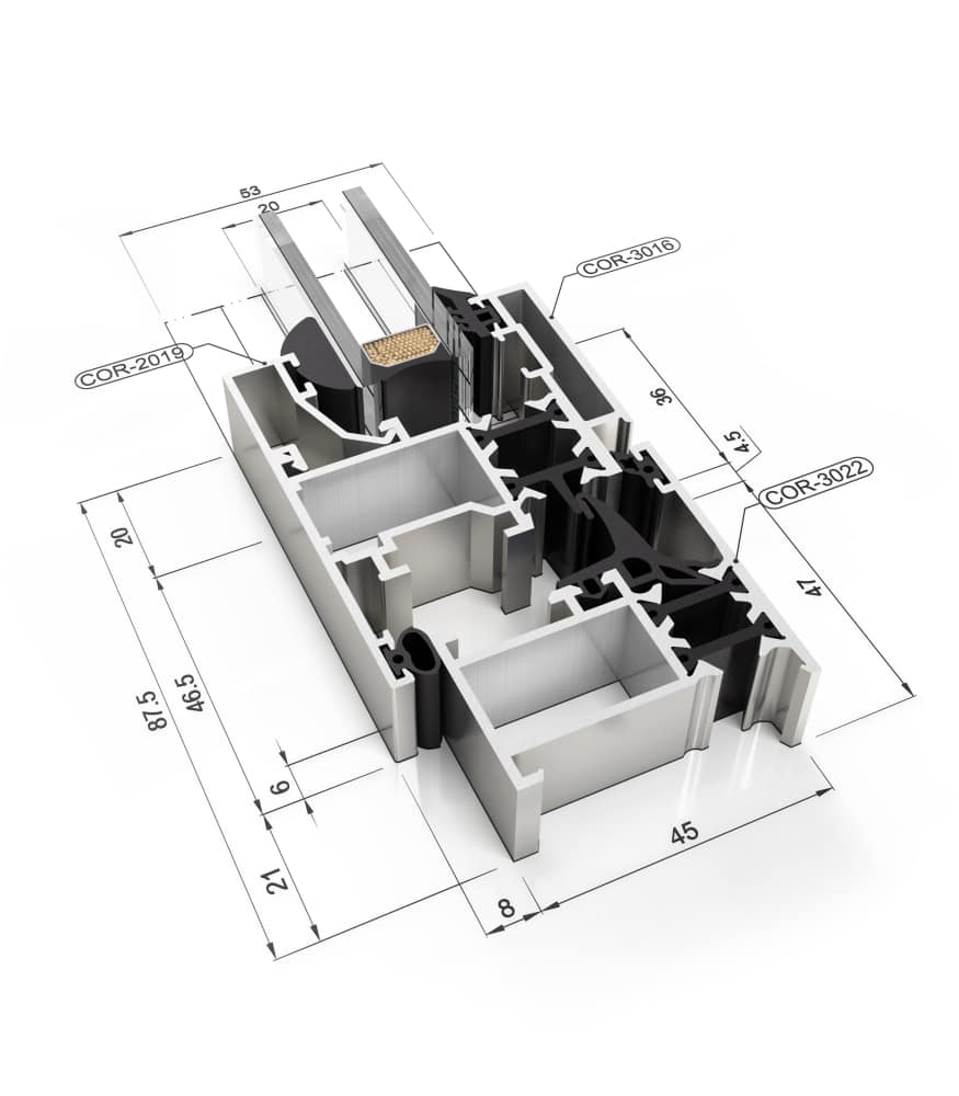 Ventana de aluminio de cuarenta y cinco mm de profundidad de marco con una ruptura de puente térmico de catorce con seis mm.
