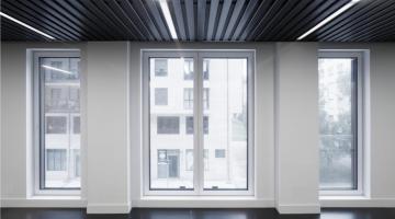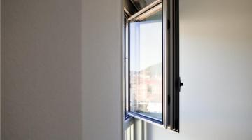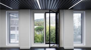 Ventana de aluminio de doble hoja oculta con unas excepcionales prestaciones acústicas.