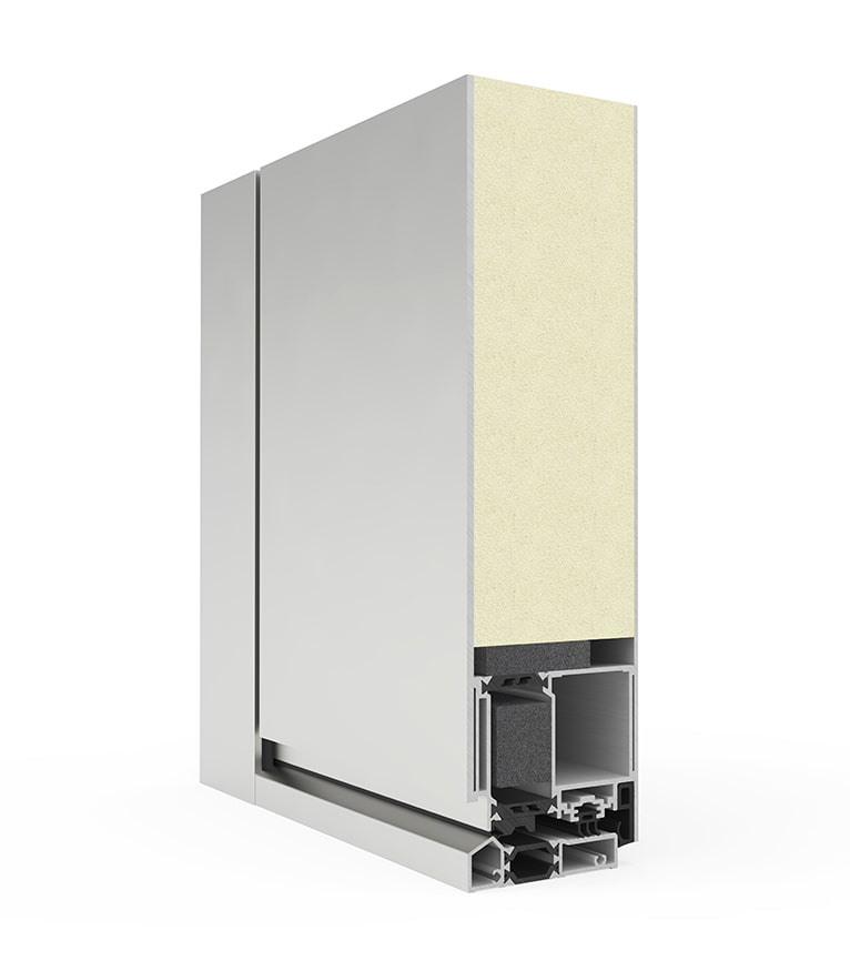 Sistema de puerta panelada de aluminio compatible con los sistemas puerta Millennium Plus, tanto de setenta como de ochenta mm. Permite agregar una enorme pluralidad de paneles integrados en la hoja con una estética completamente limpia.